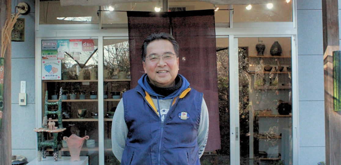 錦町ののどかな田園風景が広がる木上(きのえ)地区。住宅が点在する静かな集落のなかに、入り口の壁に「陶祥窯」と記された一軒の工房が見えてくる。時折、轆轤(ろくろ)の音が心地よく響き、工房には土の香りが穏やかに立ち込める。